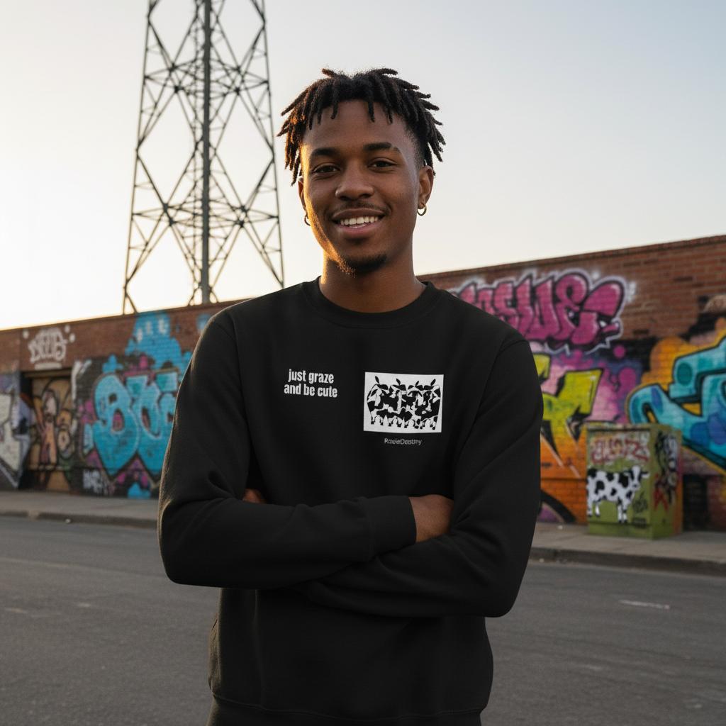 Black Cow Sweatshirt Cozy Humorous Graphic Herd of Cows 'just graze and be cute'